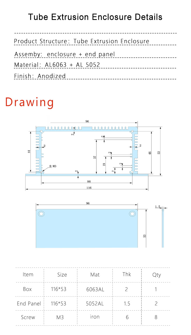 116*53-L electrical metal aluminum extrusion industry enclosure box manufacture