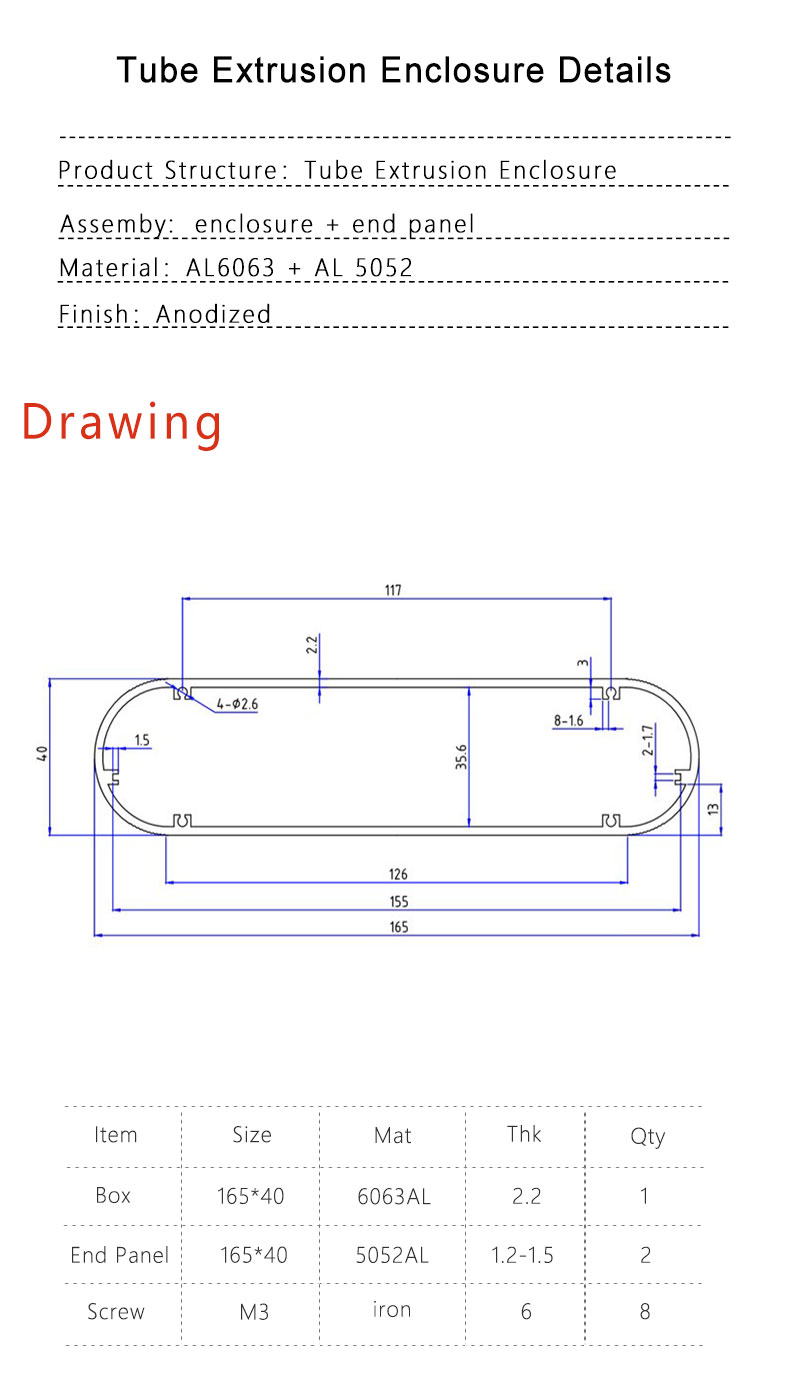 165*40Custom Extruded aluminum enclosure electrical power PCB case pedal amplifi box