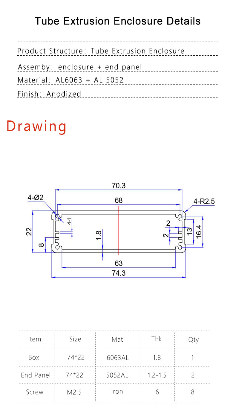74*22Anodized Aluminum for Electronics Pcb Enclosure aluminum extrusion enclosure electronic box