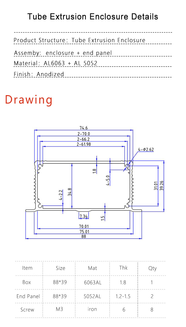 88*39China electronics anodized extruded waterproof Aluminum Electronic Enclosure