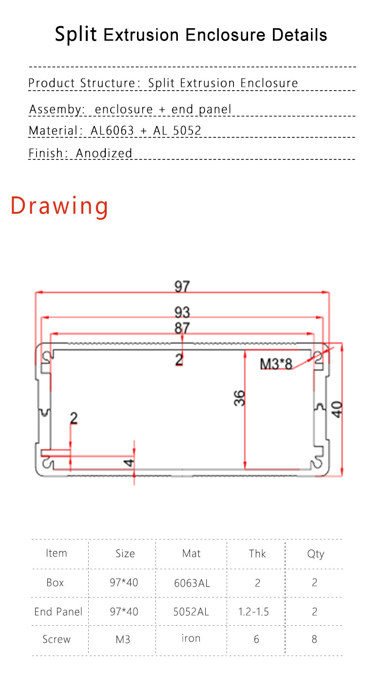 • 97*40-L aluminium extrusion profiles project case metal fabrication electronics enclosure,97*40-L aluminium  extrusion profiles project case metal fabrication electronics enclosure